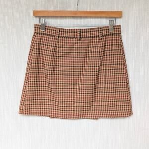 Minga London Brown Tartan Print Plaid A-line Wrap Mini Skirt, size 2
