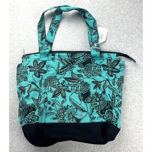 Mings Canvas Duffle Purse Blue Floral Print Tote Zipper Travel Weekender Bag No2