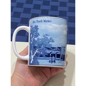 Minh Long Porcelain Blue Coffee Mug Ben Thanh Market Vietnam 12 Oz.
