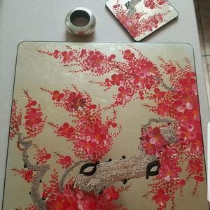 Minh Phuong 24 Piece Japanese Cherry Blossom Place Mat Sets, New, Gold Red
