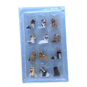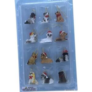 Mini 1" Dog 12 Christmas Ornaments Santa Hats Bichon Collie Yorkie King Charles