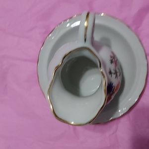 Mini 2 pc. Set Pitcher&Bowl White&Gold with floral flowers on one side 3 inches H Bowl 4 3/4 inches W.