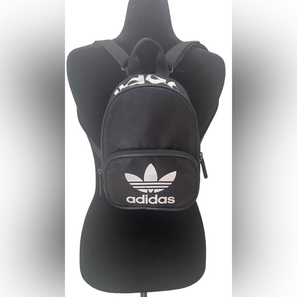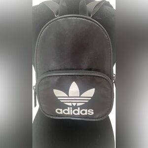 Small sized Adidas backpack with two exterior, zipper close pockets.
