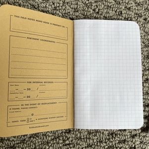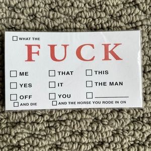 In new condition. Field notes notebook with grid paper and other cool info inside. Funny little inappropriate cards to leave on peoples desk or be funny.