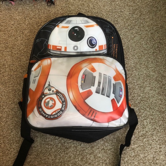 Mini BB-8 bookbag with front pocket and two side pockets it used to light up but I think the battery died perfect for kids or cosplayers