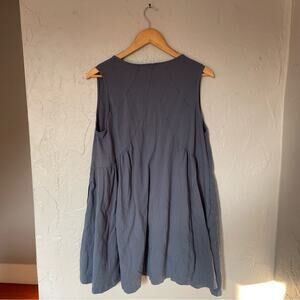 Mini Babydoll Dusty Blue Sleeveless Dress 100% Cotton size XL Boho Comfy Twee
