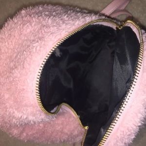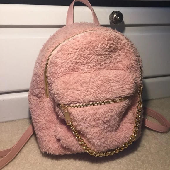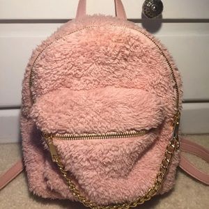 NWOT Adorable ballet pink mini backpack! Soft fuzzy material, faux leather material, black interior, interior is also easy to wipe clean, gold chain & gold zipper. Great for springtime!!