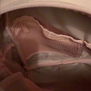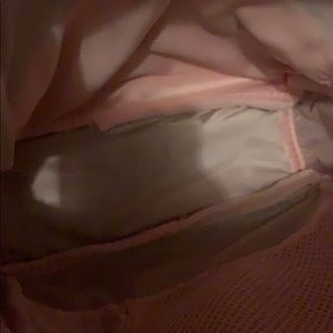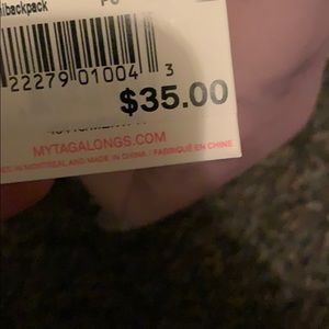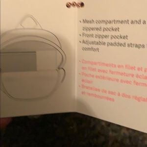 It’s super cute and great for traveling. It’s never been used. Pocket in the front and a pocket in the inside. The straps are adjustable.