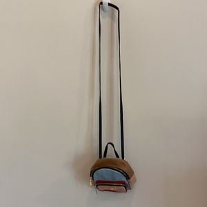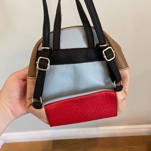 multi colored, italian, backpack, crossbody, pocket inside, two zippered sections, gold hardware
