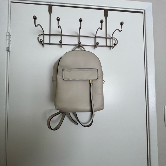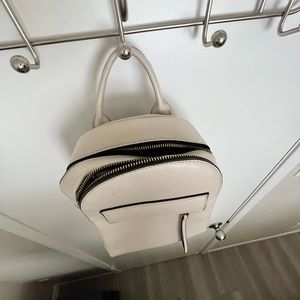 • beige • faux leather • 3 zipper pockets • surprisingly can hold a lot!