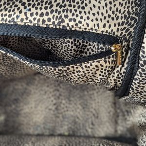 Faux leather with leopard print lining and 5 pockets