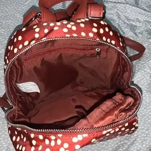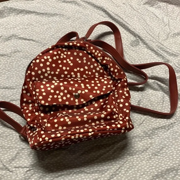 Burnt Sienna mini backpack. Great for traveling and walking around. Has good storage. Very cute.