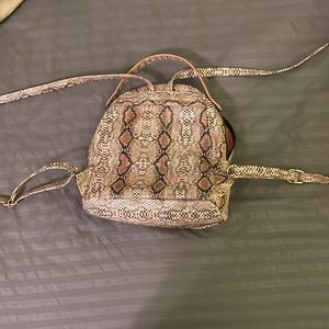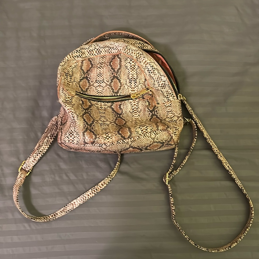 This mini backpack is a cute and stylish way to hold whatever you need if you are out shopping. It’ll hold a medium sized wallet and whatever other small accessories you may need. Its comfortable to wear on your shoulders and the strap is adjustable. The top handle is broken but can easily be put back together or taken off.