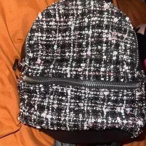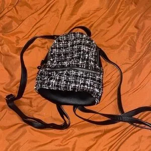 Mini Backpack Black with pink and white texture on front Barely used Adjustable straps