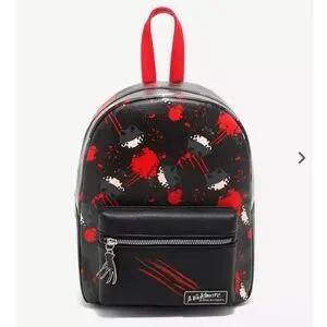 One, two, you know who's coming for you... so pack all of your essentials into this mini backpack and make a run for it! Rock the most killer backpack in all of Elm Street with this mini backpack, featuring an allover print of a chibi Freddy Kreuger and blood splatter everywhere. Comes with his signature claw as a front zipper charm and an embossed A Nightmare on Elm Street logo. Adjustable straps and silver-tone hardware.