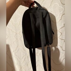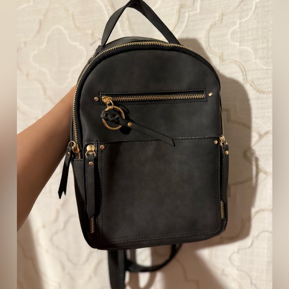 This bag is from Target, only used once. It features two side pockets with zippers, a middle pocket with a magnetic button closure, and a top zipper pocket. The main compartment includes an additional pocket inside, along with two small pocket holders. The color is a dark charcoal grey.
