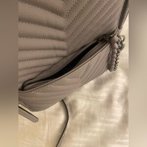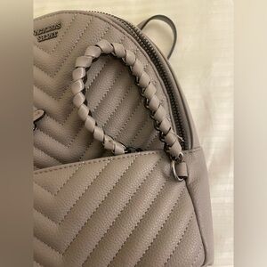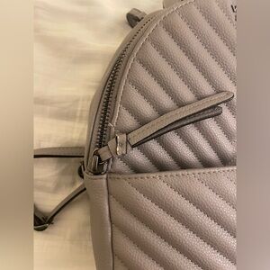 Pre-Owned in excellent condition Victoria's Secret V-Quilt City Mini Backpack Light Gray