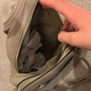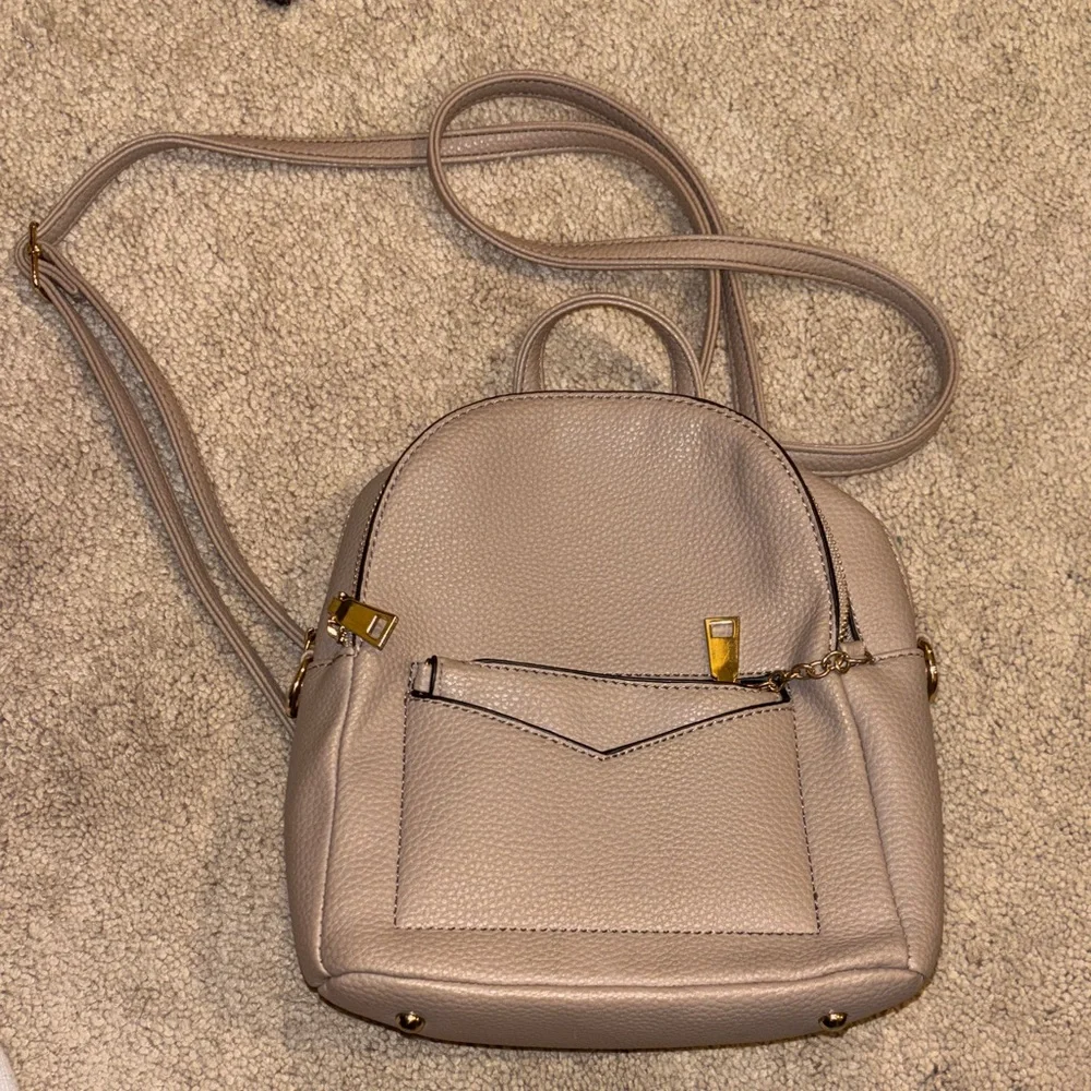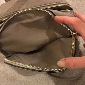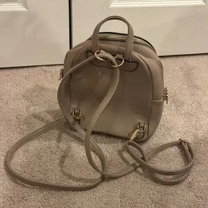 This elegant taupe backpack is perfect for everyday use. Its sleek design and neutral color make it a versatile addition to any wardrobe.
