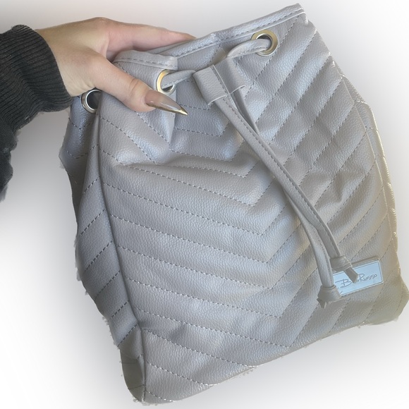 BRAND NEW! still has wrapping on it. mini backpack with drawstring type closure. light grey color