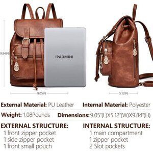 DIMENSIONS - 9.05"L x 5.12"W x 9.84"H, Weight: 1.08 pounds. It’s the perfect size as a women backpack for your daily necessities, such as mobile phone, make-up, wallet, notebook, ID card, keys and headphones. But not large enough to carry big size things like laptop, folder, etc.