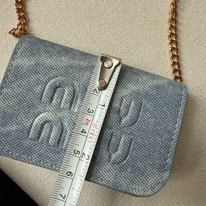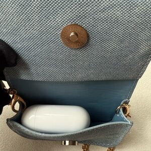 Light denim color mini bag with chain