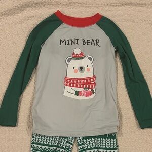 Delight your child with the Mini Bear and Elf pajama set. Featuring charming designs in gray, green, and red, these pajamas ensure a cozy and fun bedtime experience.
