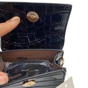 Mini Black Croc-Embossed Polyurethane Leather Convertible Shoulder & Handbag With Gold Accents Snap Closure & Detachable Strap