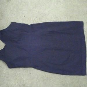 Short length dress with a small (approx 2 in.)back slit, tires around the neck for adjustment and is stitched to show the figure.