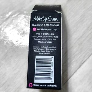 No added chemicals, 100% vegan, Free of alcohol, oils, astringents, parabens, fragrances, & sulfates. Mini-size MakeUp Eraser measures approximately: 8" x 4"