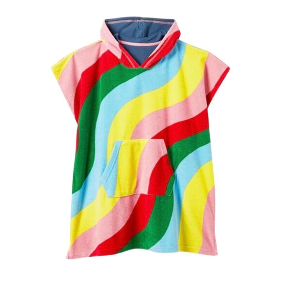 Mini Boden 2-5Y Rainbow Striped Hooded Towel Beach Coverup French Terry