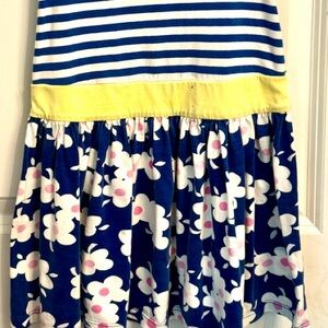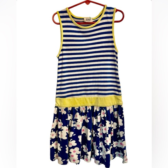 Blue & White Striped Sleeveless Dress Summer Yellow Trim