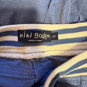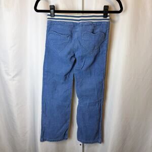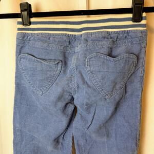 Mini Boden 9Y Blue Corduroy Pants Heart Knees Stripe Waist Pull On Girls Cute