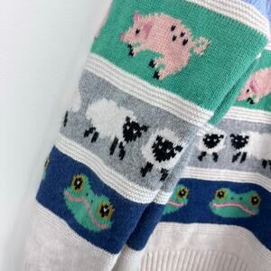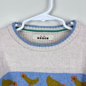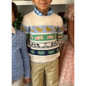 Mini Boden All Over Fair Isle Sweater Easter Farm Animals. Boys size 7-8 years. For someone who wore this for all of 5 minutes, my son was very aggressive in removing the tag, taking the size tag out with it. The cutest and feels so cozy, too! Pullover crewneck style with chickens, pigs, sheep, and frogs! Perfect condition.