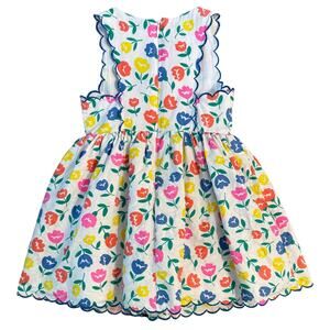 Mini Boden Anthropologie Girls Linen Floral Tulip Easter Dress White Size 2-3Y