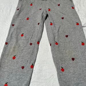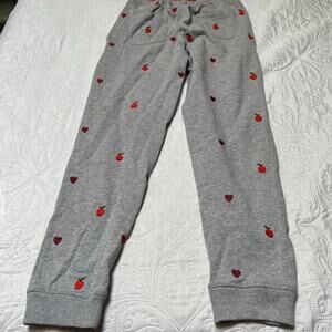 Mini Boden heart and apple joggers. Pull on jogger style sweatpants in gray. Good condition, light dinginess on knees. Size 9.