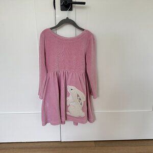 Mini Boden Appliqué Bunny Long Sleeve Velour Dress with Bunny size 5-6