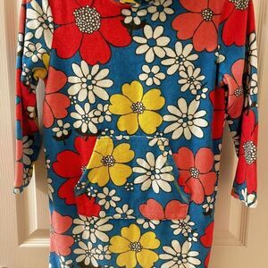 Mini Boden Blue Floral Swim Dress Cover Up Towelling Terry Hooded Girls Size 7-8. The Mini Boden towelling swim dress terry cover up is my favorite for the pool, just pullover your suit when you get out of the water. Adorable floral print, hooded and a kangaroo pocket in the front. Has been used, but no major issues that I can find. Very Good Used Condition.