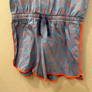 Mini Boden romper size 11-12. Blue tank with red strawberry print all over and red trim. Super cute for summer! Very good condition .