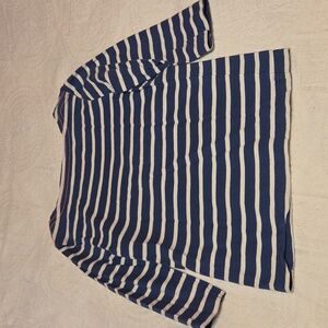 3/4 sleeve. Great condition, faded blue and white stripe. Cute flower and bee embroidered decorations.