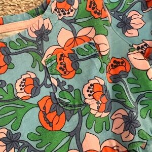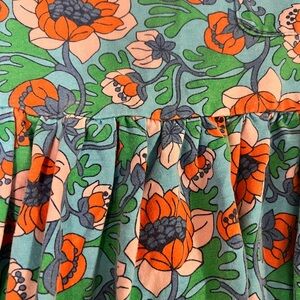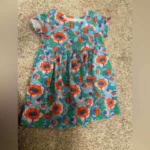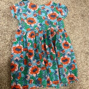 Charming floral dress. Features vibrant blue and orange colors. Perfect for casual outings.