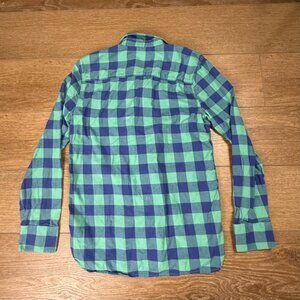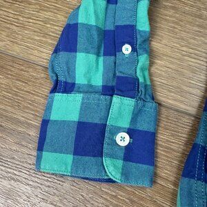 Mini Boden Boys Buffalo Plaid Long Sleeve Button Down Shirt, Blue/Green 13-14Y
