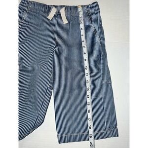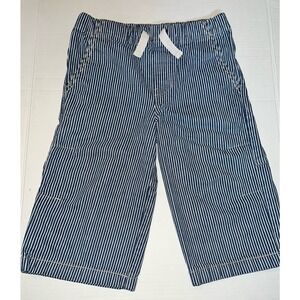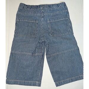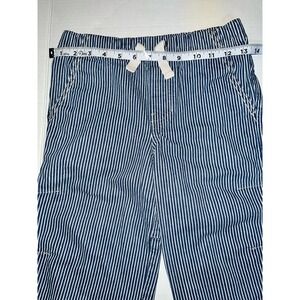 Mini Boden Boys Denim white and blue stripped pull on long Bermuda shorts. size 8. Like new. Pockets. elastic waist. see photos for measurements