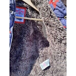 Gray sleeveless mini boden puffer style fleece lined vest in boy's size 5 to 6Y. It is in very good condition with one untreated spot on the front as pictured. It is a polyester and acrylic blend and is machine washable. It has full snap buttons on the front with 2 front slash pockets. Please look over all pictures carefully before purchasing. I ship within 24 to 48 hours after receipt of payment. Measurements are approximate and taken while garment was lying flat and unstretched. Comes from a smoke free but pet friendly home.