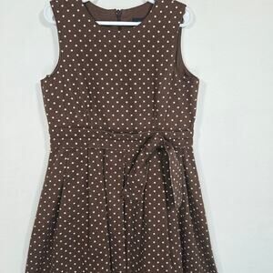 Mini Boden Brown Polka Dot Girls Dress. Size 7-8. Sleeveless. Pleated Skirt. Fully Lined. Hidden Zipper Closure On The Back. Measurements Pit To Pit 14 Inches; Length 30 Inches.