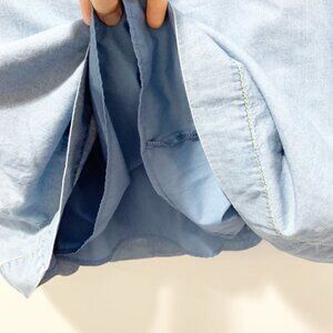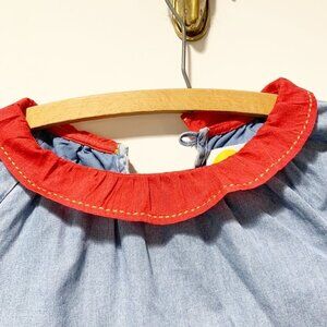 Mini Boden Chambray Embroidered Floral Dress Size 9/10 Peter Pan Collar