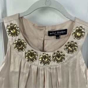 Girls Mini Boden Champagne Metallic Jeweled Collar Trapeze Style Formal Dress