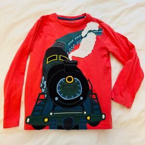 Mini Boden Coral Long Sleeve T-Shirt Train Steam Engine Applique Size 7-8Y