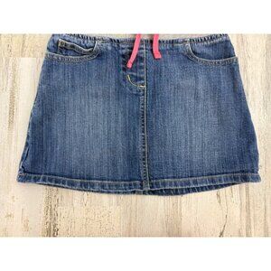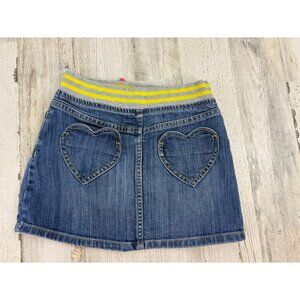 Mini Boden Denim Skirt Knit Waistband Heart Pockets Jean Girls Size 7 8