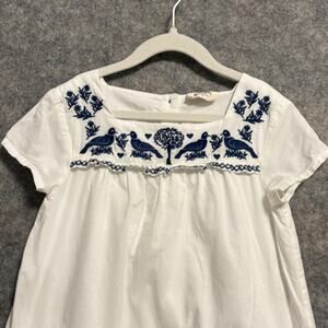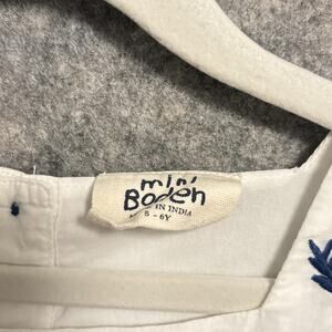 Mini Boden Dress Girl Size 5 6 White Embroidered Birds Pockets Folk Boho Cotton