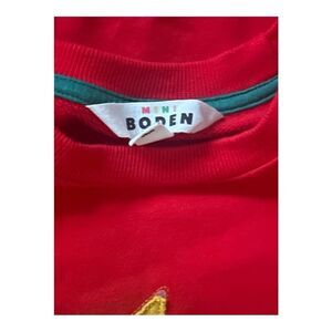 Mini Boden | EUC Brilliant Red Christmas Tree Cosy Appliqué Sweatshirt Dress 7 8